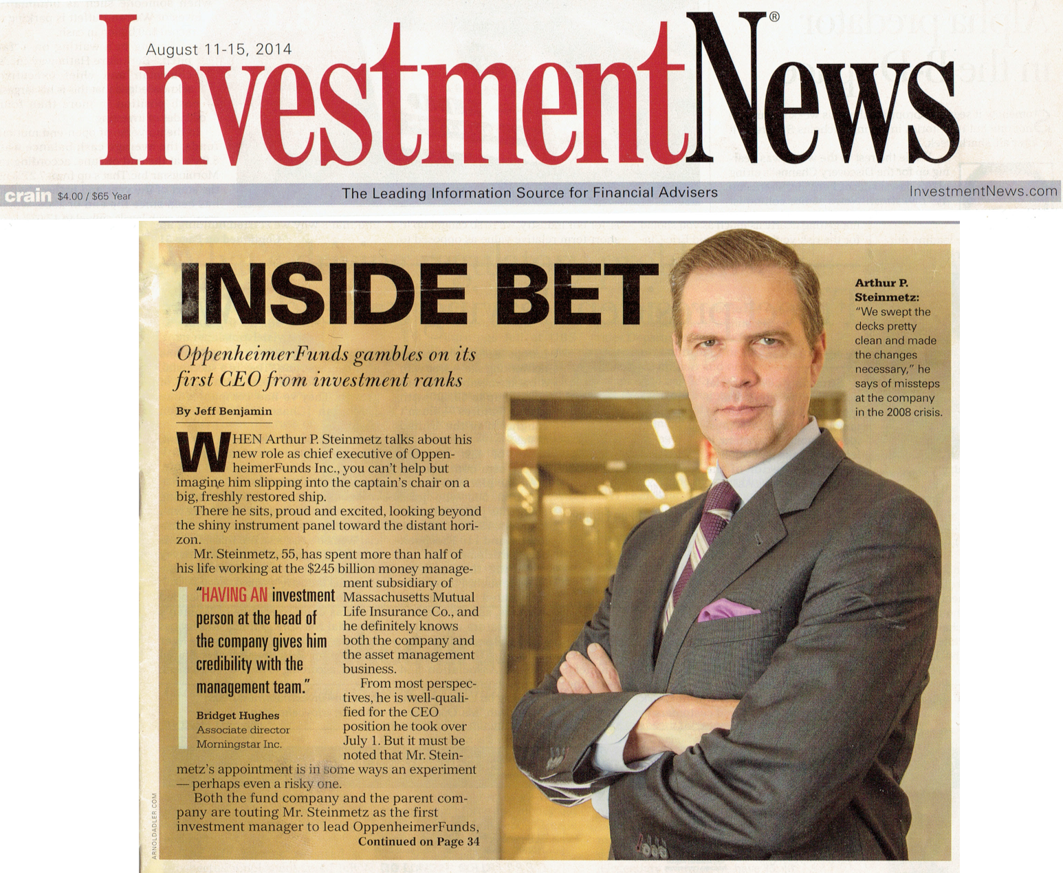 I am the former Chairman, CEO and President of OppenheimerFunds. After joining the firm in 1986, I served as an analyst, portfolio manager and Chief Investment Officer. I was named President in 2013, CEO in 2014, and, in 2015, Chairman of the firm with $250 billion under management. I stepped down when the firm was sold to Invesco.